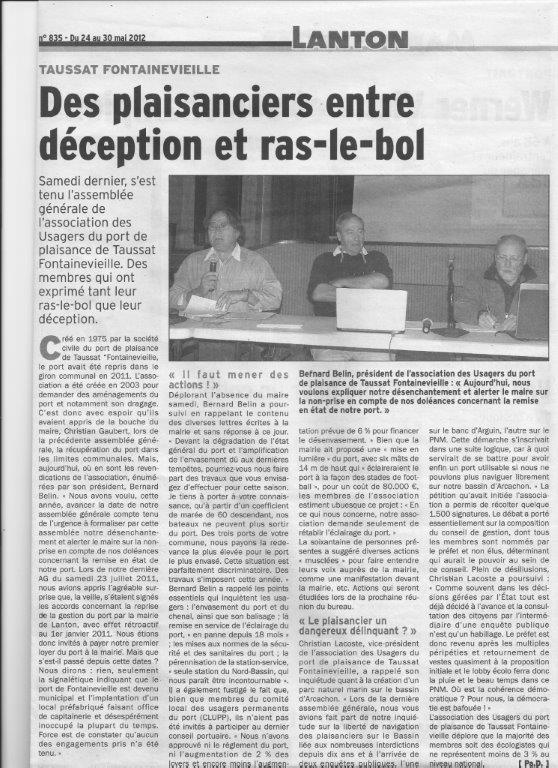 Consultez également l'article de presse dans le journal La Dépêche du Bassin, AG 2015 - article La Dépêche du Bassin (3.63 Mo)